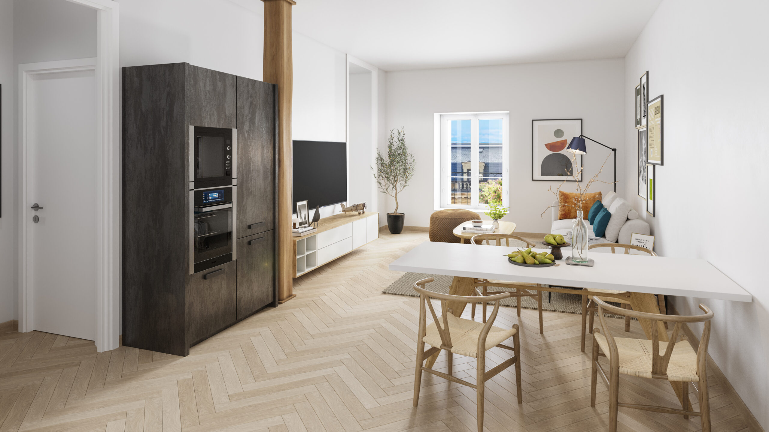 Cada unidad en esta cuarta planta ha sido concebida como un hogar singular, donde la historia del edificio convive con las exigencias del confort actual. Techos altos, grandes ventanales y acabados de primer nivel dan forma a espacios amplios, cálidos y sofisticados.